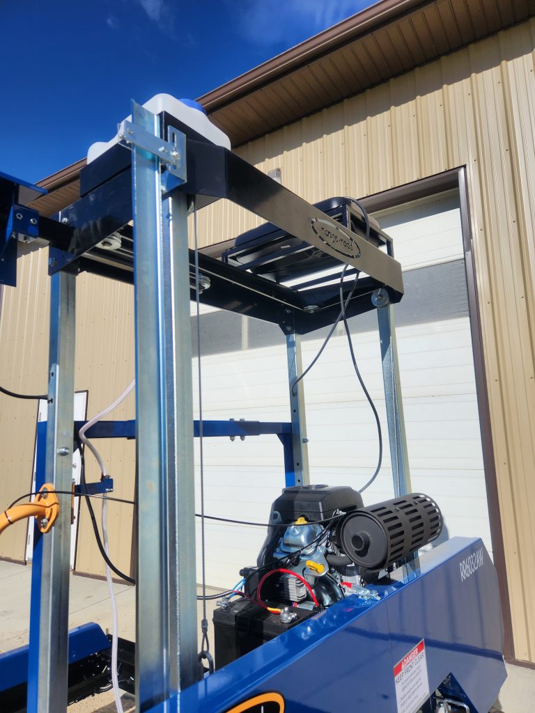The Range Road 60 series sawmills offer a range of accessory options, including extensions, electric powerheads, and trailer packages. The 36” 60 series sawmill is equipped with redesigned heavy-duty tracks and wider bunks and comes standard with the optional electric powerhead for added convenience when adjusting your cutting depth.