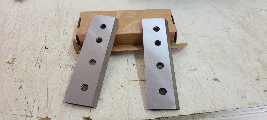 Two reversible hardened steel blades for extended cutting life