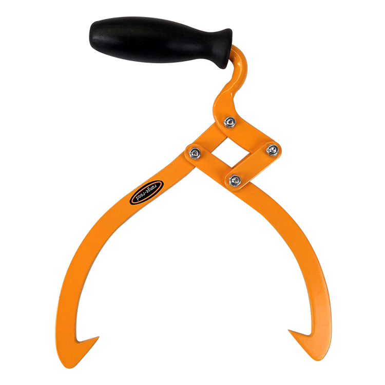 Manual log tongs with offset handle makes it easy to grip, carry & stack firewood.
